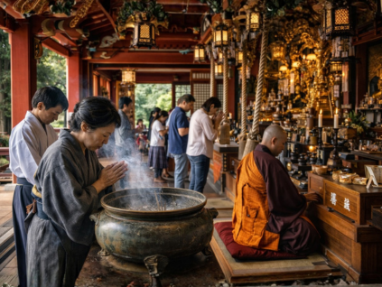 Do stejného světa jemných rituálů patří i vonné tyčinky. V Japonsku nejsou jen dekorací nebo domácím parfémem. Jsou spojeny s chrámovou praxí i s tradicí kódo, tedy „cesty vůně“, kterou JNTO řadí mezi starobylá umění přetrvávající do současnosti. V chrámech jsou vonné tyčinky běžnou součástí návštěvy; lidé je zapalují, vkládají do kadidelnice a kouř symbolicky přivolává očistu či uzdravení. Vůně je tu tedy mostem mezi každodenností, estetikou a spiritualitou.