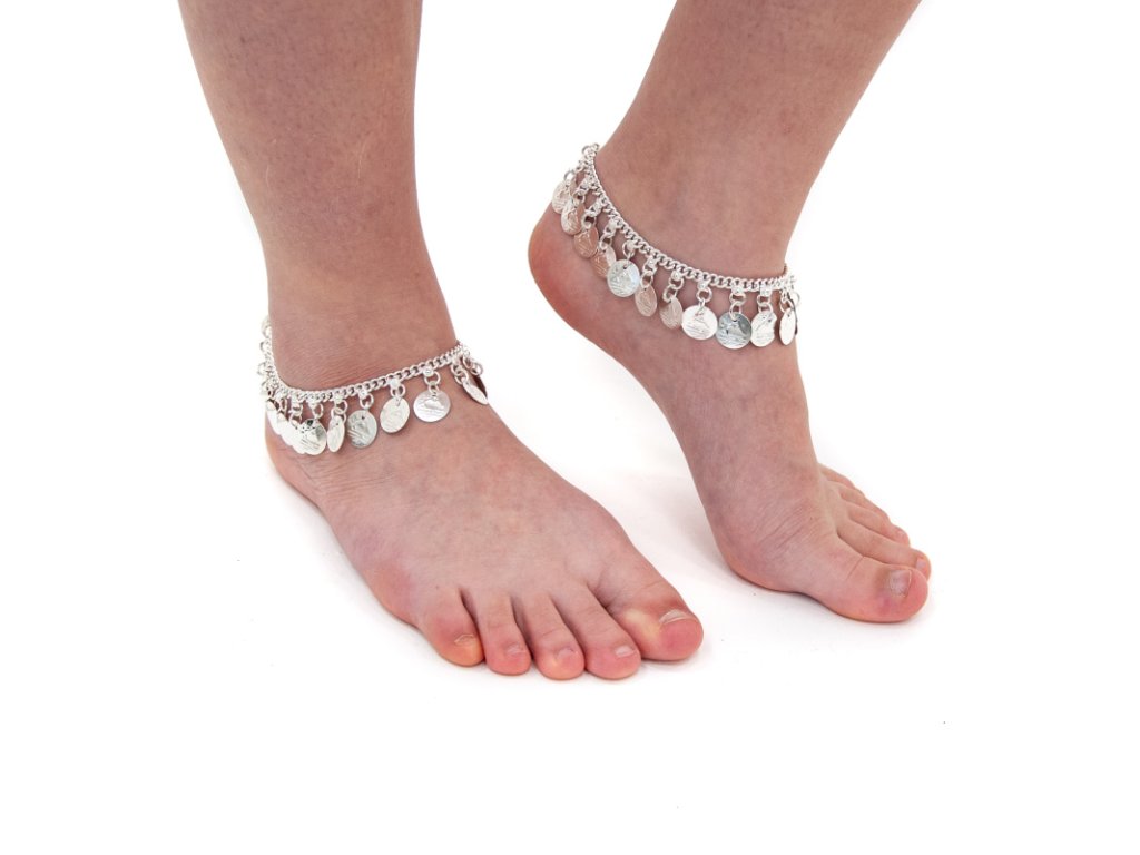 Kovové náramky na nohu pro břišní tanečnice. Minimální obvod nohy je 25cm, maximální 29cm. Uvedená cena je za pár náramků.