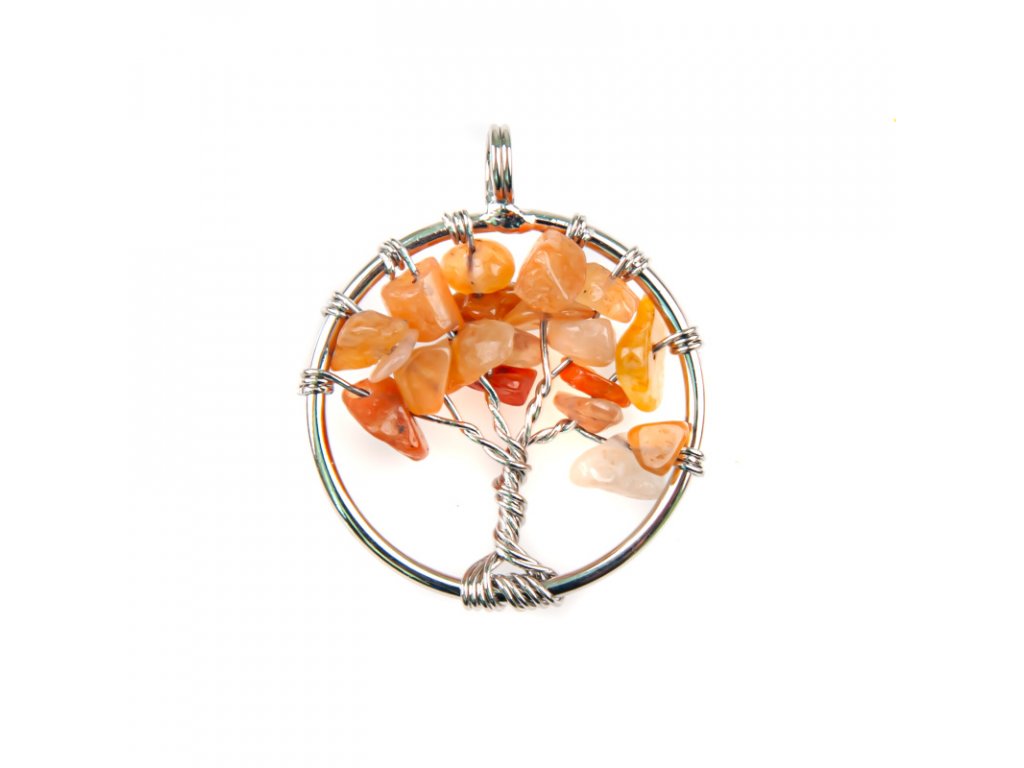 Přívěsek Strom života drátovaný Avanturin oranžový 3 cm
