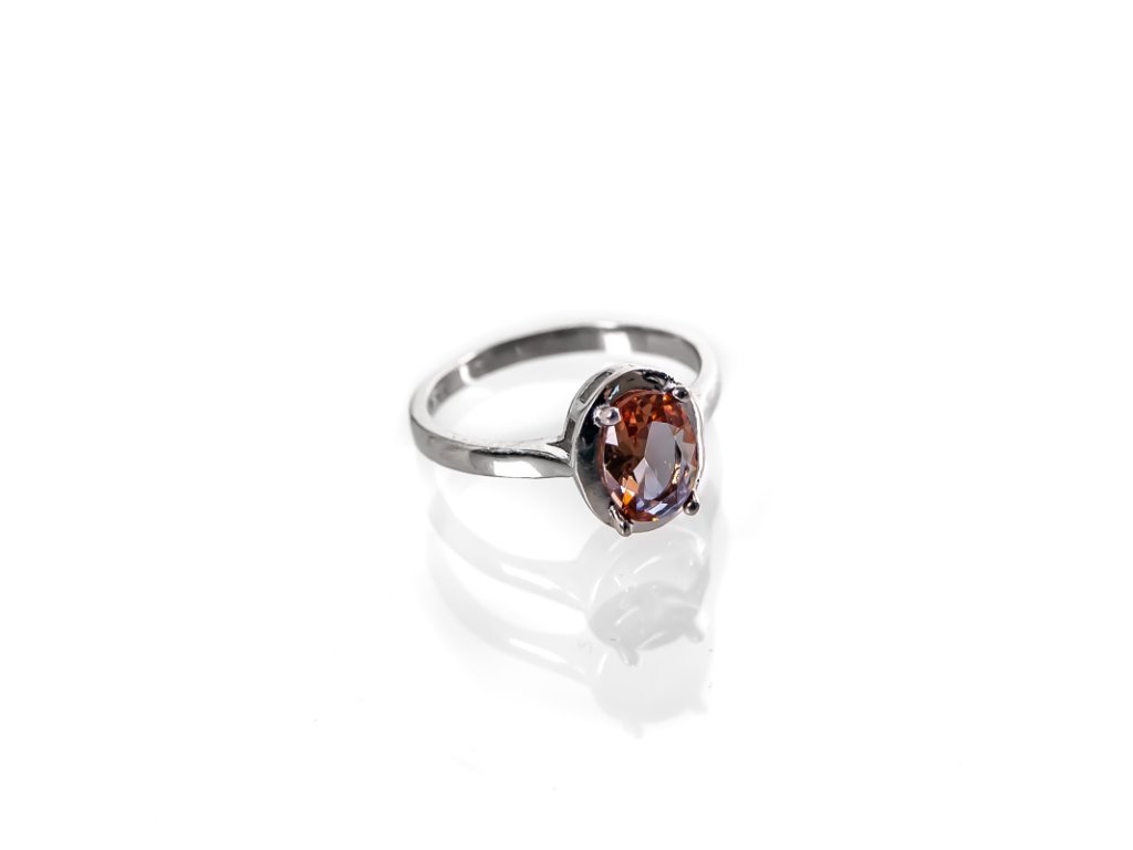 Elegantní stříbrný prstýnek, ozdobený oválným broušeným syntetickým kamenem.