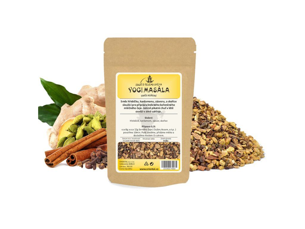 Yogi Masala - směs koření pro přípravu čaje zvaného Másala - nebo také i Yogi čaj. Osvěžující pikantní čajové pochutnání. Směs hřebíčku, kardamonu, bílého pepře, zázvoru, a skořice sloužící pro přípravu indického kořeněného mléčného čaje. Jemně pikantní chuť, v létě osvěží, v zimě zahřeje.