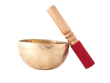 Tepaná tibetská mísa Jinpa o hmotnosti 266 g, včetně paličky.